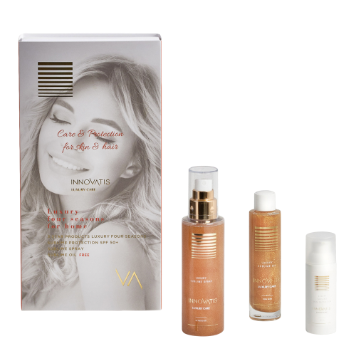 La linea Luxury Sun è formulata per proteggere corpo e capelli da raggi solari, acqua, umidità, cloro e sale e ridare energia e benessere dopo un’intensa attività fisica.